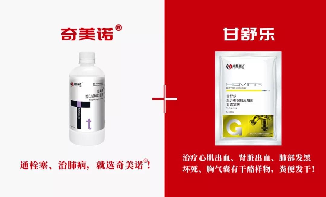 奇美諾?(800斤水/瓶)+甘舒樂(1000斤水/袋)全天量集中飲用8小時(shí),連用3天。